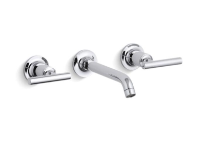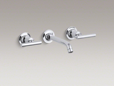 Capturing the style of minimalist design, KOHLER® Purist faucets deliver streamlined water control. This wall-mount bathroom sink faucet trim features a 35° angled spout and cross handles for easy operation. The convenient wall-mount design provides a clutter-free countertop in your bath or powder room. When paired with a two-handle ceramic disc valve, this trim offers optimal performance. Combine it with bath accessories from the Purist collection for a distinctively modern and unified decor.