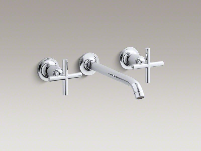 Capturing the style of minimalist design, Purist faucets deliver streamlined water control. This sink faucet trim features a 35-degree angled spout and cross handles for easy operation. The convenient wall-mount design provides a clutter-free countertop in your bath or powder room. When paired with a two-handle ceramic disc valve, this trim offers optimal performance.