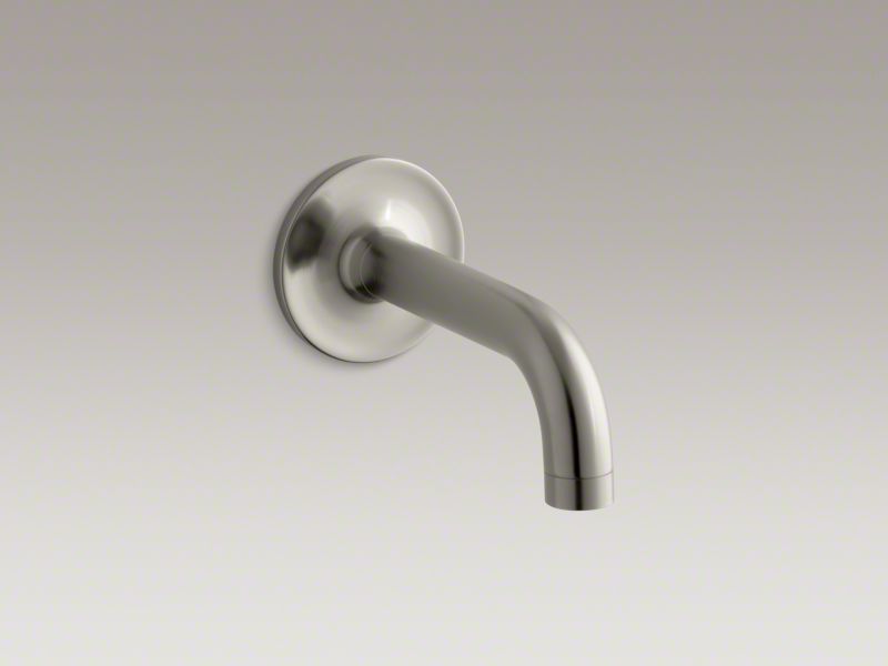 Kohler® 90 deg Non-Diverter Bath Spout, Wall Mount, Purist®, For Use With: Model K-T14420 Bath and Shower Trim Set, Brass, Vibrant® Brushed Nickel, 7-3/4 in L x 4 in H