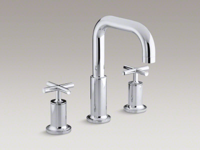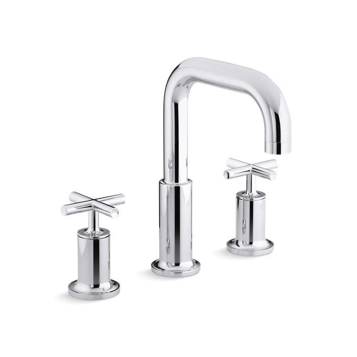 KOHLER® Purist bathroom faucets and accessories combine simple, architectural forms with sensual design lines. Featuring this modern, minimalist style, this Purist deck-mount bath faucet trim includes a spout and ergonomic cross handles that add sophistication to your bath. The two handles allow you to control hot and cold water separately, making it easy to find your desired temperature. Pair this trim with high-flow ceramic disc valves or 1/2-inch ceramic disc valves for optimal performance.