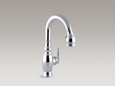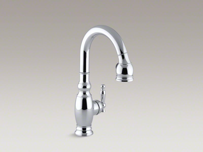 The traditional design and user-friendly features of this Vinnata bar sink faucet make it an attractive, hard-working addition to the kitchen or entertainment area. When paired with a secondary sink, this faucet aids in food preparation and cleanup. An elegant gooseneck swing spout reaches over large items, while a pull-down sprayhead operates with the push of a button, allowing you to switch between a gentle, aerated stream and a powerful spray. The easy-to-clean sprayface resists mineral buildup.