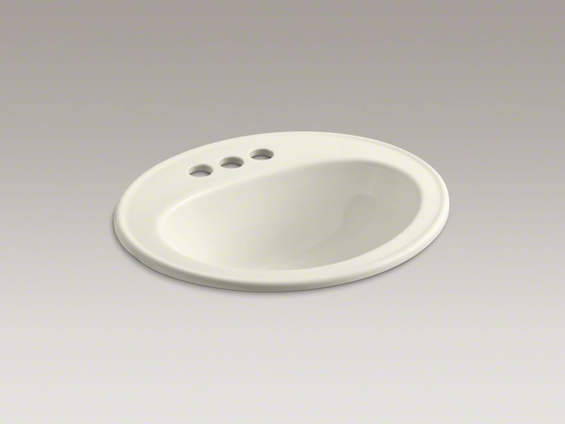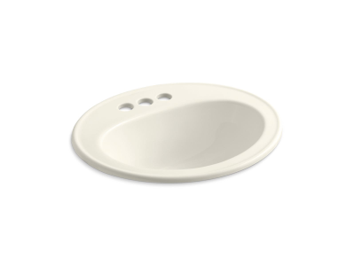 Kohler® Self-Rimming Bathroom Sink, Pennington®, Oval, 16 in L x 11 in W Bowl, 1-3/4 in Drain Opening, 3 Faucet Holes, 4 in Faucet Hole Spacing, 1 Basin, 20-1/4 in W x 17-1/2 in D x 8-1/2 in H, Drop-In Mount, Vitreous China, Biscuit, ADA Compliance (Yes/No): Yes