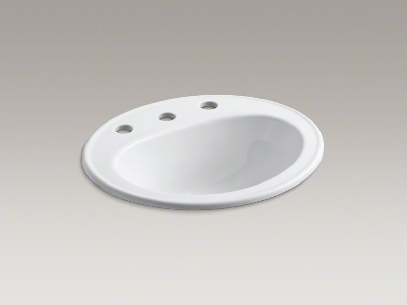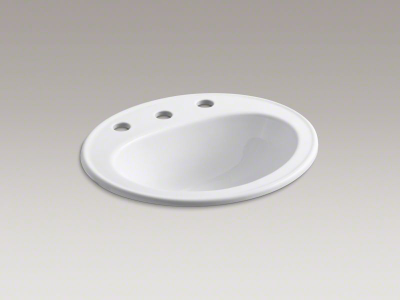 Kohler® Self-Rimming Bathroom Sink, Pennington®, Oval, 16 in L x 11 in W Bowl, 1-3/4 in Drain Opening, 3 Faucet Holes, 8 in Faucet Hole Spacing, 1 Basin, 20-1/4 in W x 17-1/2 in D x 8-1/2 in H, Drop-In Mount, Vitreous China, White, ADA Compliance (Yes/No): Yes