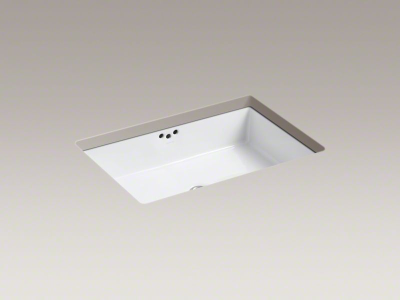 Kohler®, 2297-G-0, Bathroom Sink With Overflow Drain, Kathryn® Collection, Rectangular Shape, 21-3/8 in L x 13-1/8 in W Bowl, 1-3/4 in Drain Opening, 1 Basins, 23-7/8 in W x 15-5/8 in D x 6-1/4 in H Overall, Undermount Mounting, Vitreous China, White, ADA Compliance: Yes