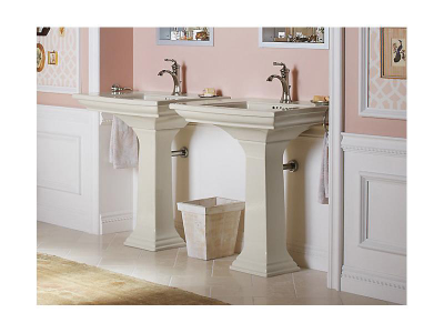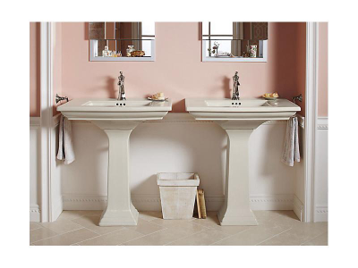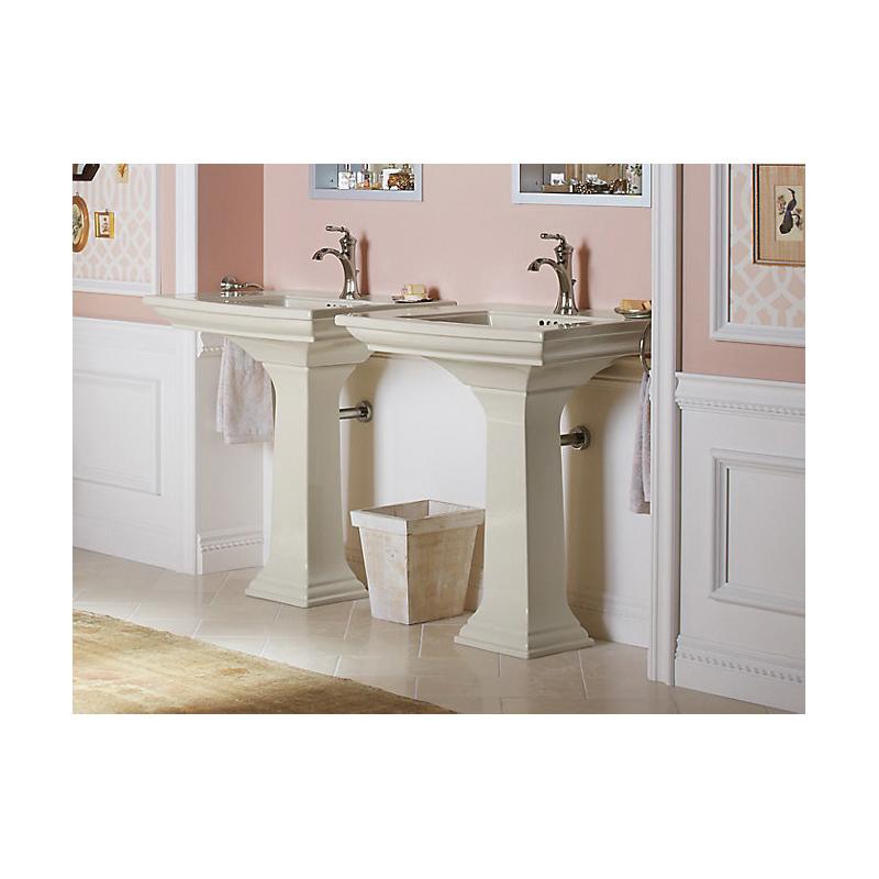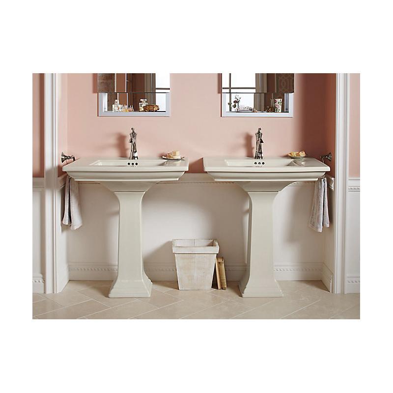 The KOHLER® Memoirs collection with Stately design draws its inspiration from traditional furniture and architectural elements. The crisp, clean lines of this rectangular pedestal bathroom sink evoke the splendor of fine antiques.