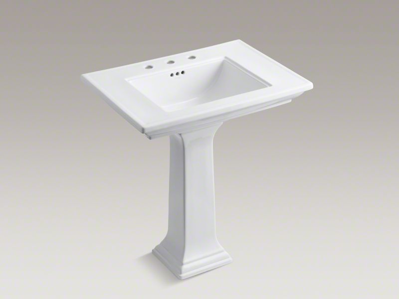 The KOHLER® Memoirs collection with Stately design draws its inspiration from traditional furniture and architectural elements. The crisp, clean lines of this rectangular pedestal bathroom sink evoke the splendor of fine antiques.