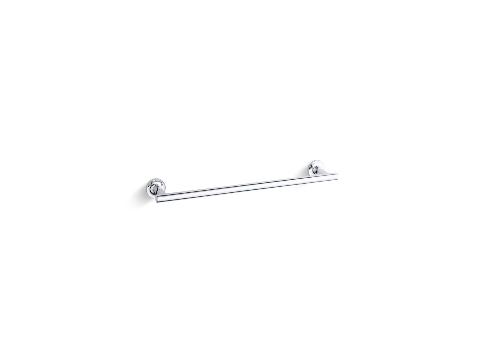 Kohler® Towel Bar, Purist®, 18 in Bar Length, 19-11/16 in Overall Length, 2-13/16 in Overall Depth, 1-7/8 in Overall Height, 1-7/8 in Base, Brass, Polished Chrome