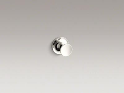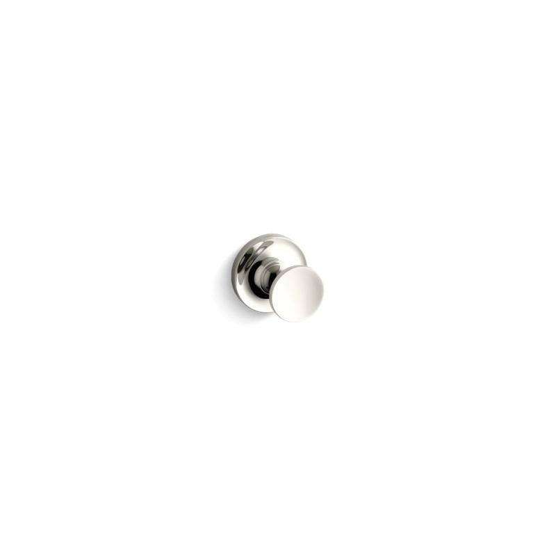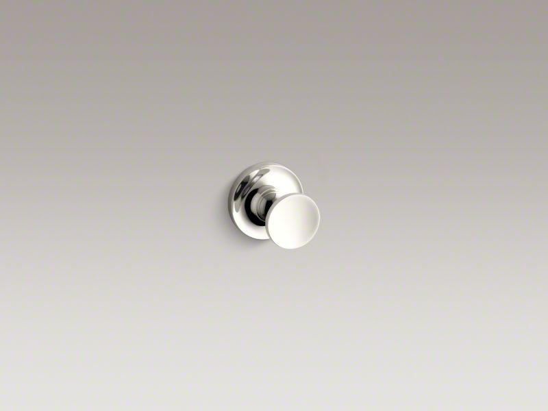 Kohler® Robe Hook, Purist®, 1 Hook, 1-7/8 in Base Dia, 1-3/4 in Overall Depth, 1-3/8 in Overall Height, Wall Mount, Brass, Vibrant® Polished Nickel