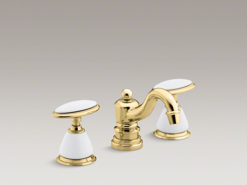 An elegant finishing touch to traditional decor, Antique faucets and accessories bring nostalgic charm to bath and powder rooms. This widespread sink faucet features two oval handles, laminar flow for a strong, solid stream of water, and easy-to-clean and leak-free UltraGlide(TM) valves. Complete this faucet with stylish ceramic handle skirts.