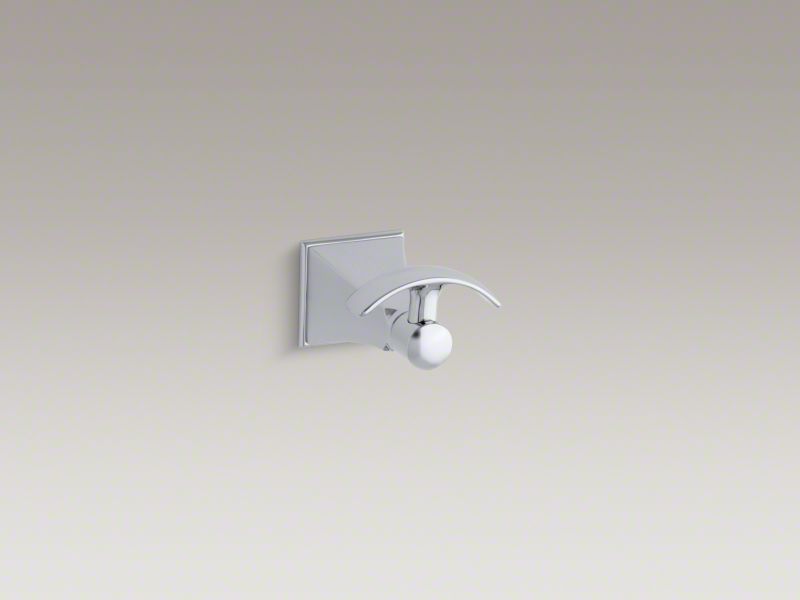 Kohler® Robe Hook, Stately Design, Memoirs®, 1 Hooks, 2-5/8 in Overall Width, 3-1/4 in Overall Depth, 1-1/4 in Overall Height, Wall Mount, Brass, Polished Chrome