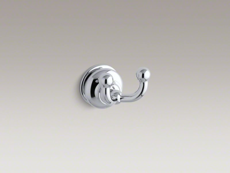Featuring soft curves and a unique form, Fairfax accessories bring a sophisticated, elegant design to your bathroom. With two hooks, this robe hanger keeps robes, towels, and clothes within reach and off the floor or counter.