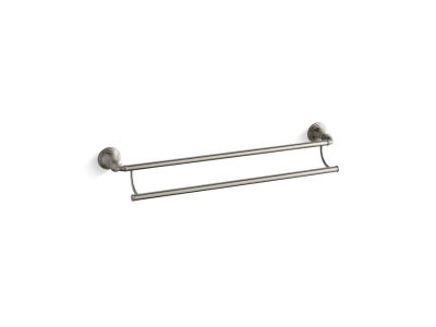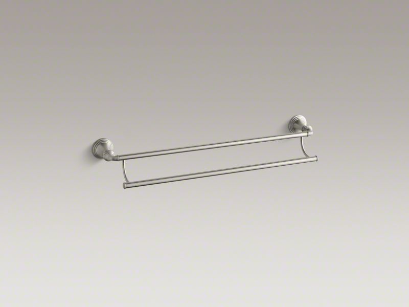Kohler® Towel Bar, Double, Devonshire®, 24 in Bar Length, 26-3/8 in Overall Length, 5-7/8 in Overall Depth, 4 in Overall Height, 2-3/8 in Base, Metal, Vibrant® Brushed Nickel