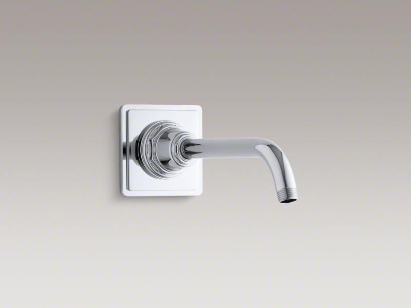 Evoking the classic elegance and Art Deco sensibility of the 1930s, this KOHLER® Pinstripe shower arm and flange create a crisp, refined look in your bathroom and shower. Shower Trim Set The shower arm provides a solid mount for a variety of showerheads and includes a square flange for a decorative accent. This brass construction ensures long-lasting durability.