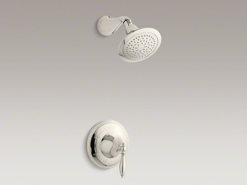 The classic detailing of Finial Traditional faucets imparts an elegant look to your bathroom. This shower faucet trim features an ergonomic lever handle for easy operation. Pair this trim with a Rite-Temp(R) pressure-balancing valve, which maintains your desired water temperature during pressure fluctuations.
