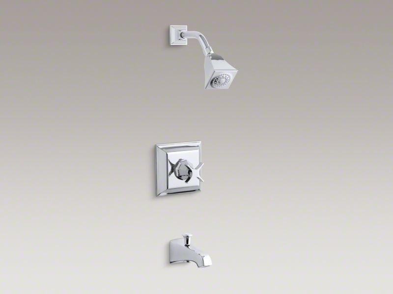 Kohler T461-3S-CP Rite-Temp(R) Pressure-Balancing Bath and Shower Faucet, Stately Design and Cross Handle