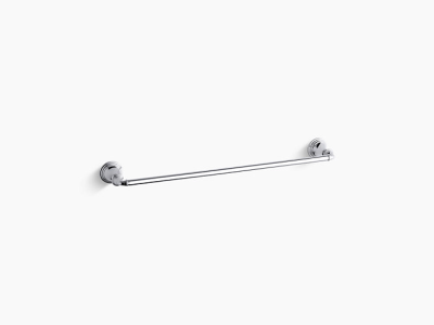Kohler® Towel Bar, Single, Devonshire®, 24 in Bar Length, 26-3/8 in Overall Length, 3-11/16 in Overall Depth, 2-3/8 in Overall Height, 2-3/8 in Base, Metal, Polished Chrome