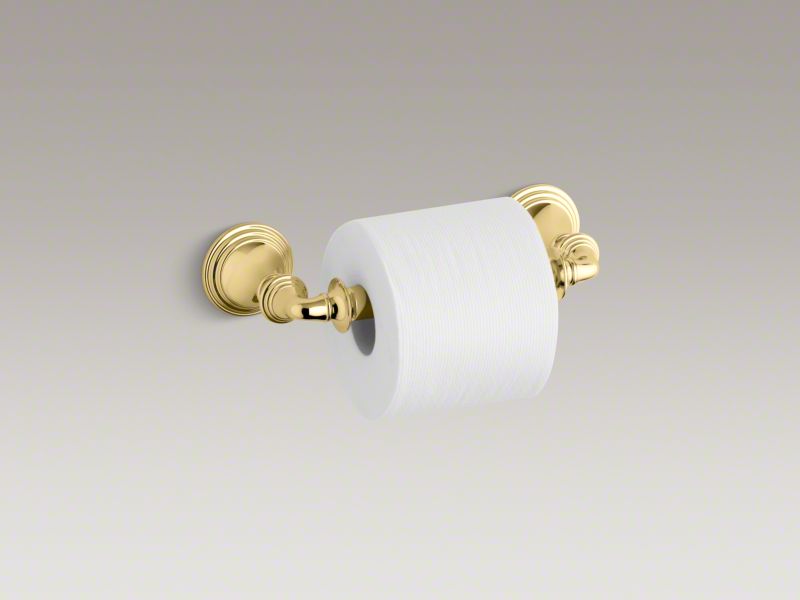 Kohler® Toilet Tissue Holder, Devonshire®, 2-3/8 in Height, 10 in Length, 4 in Width, Wall Mount, Metal, Vibrant® Polished Brass