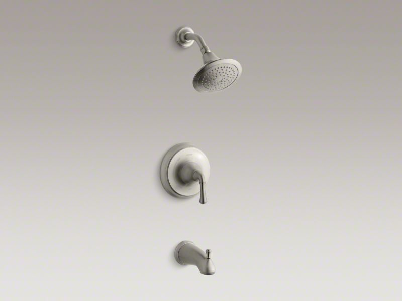 Forte faucets complement classic or contemporary spaces with their versatile design and effortless installation. This bath and shower trim features a single-control traditional lever handle and a single-function showerhead that provides optimal water coverage. Pair this trim with a Rite-Temp(R) pressure-balancing valve, which maintains your desired water temperature during pressure fluctuations.
