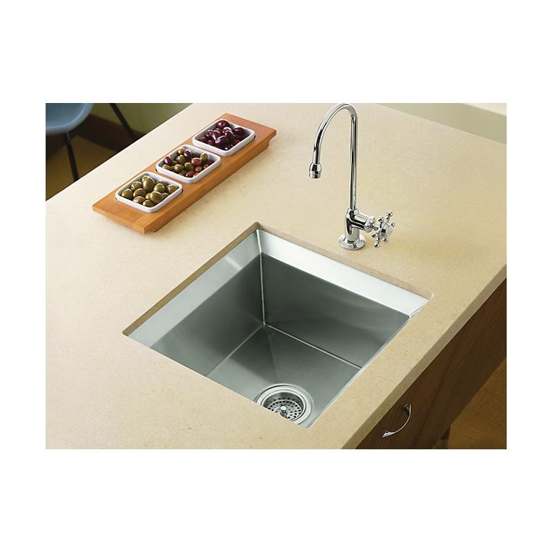 Kohler®, 3161-NA, Bar Sink, Poise® Collection, Rectangular Shape, 14 in Bowl Length, 14 in Bowl Width, 9-3/16 in Bowl Depth, 3-5/8 in Drain Opening, 1 Bowls, 18 in L x 18 in W x 9-1/2 in D Overall, Undermount Mounting, Stainless Steel