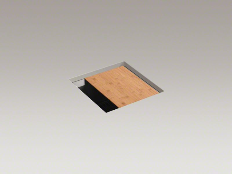 With its angular shape and beveled basin, the KOHLER® Poise bar sink brings sleek, polished style to entertaining. This luxury undermount bar sink is handcrafted from premium quality, 16-gauge stainless steel for exceptional durability and luster. The single bowl features an engineered sound-absorption system that significantly reduces disposal and dishwashing noise. An included bottom sink rack helps prevent scratches, and the custom-fit cutting board allows you to work directly over the basin.
