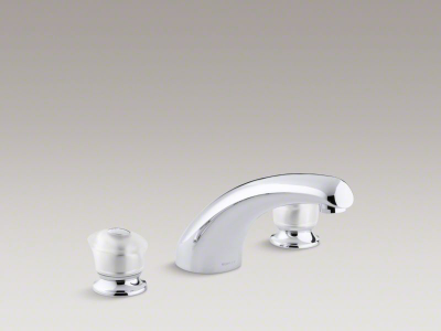 Offering convenience, quality and style at a competitive price, this Coralais(R) deck-mount bath faucet trim brings sleek design continuity to the bath. Two sculptured acrylic handles complete the look.