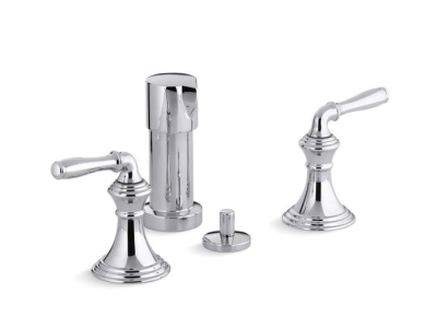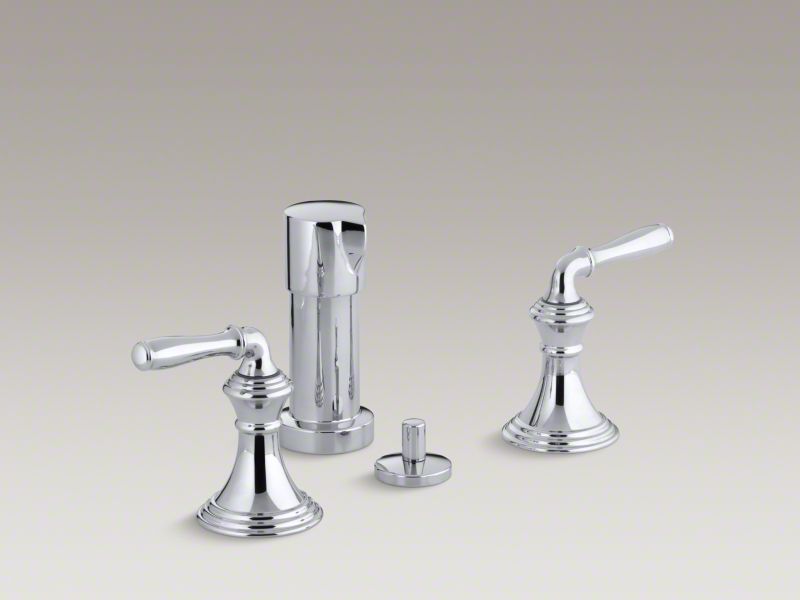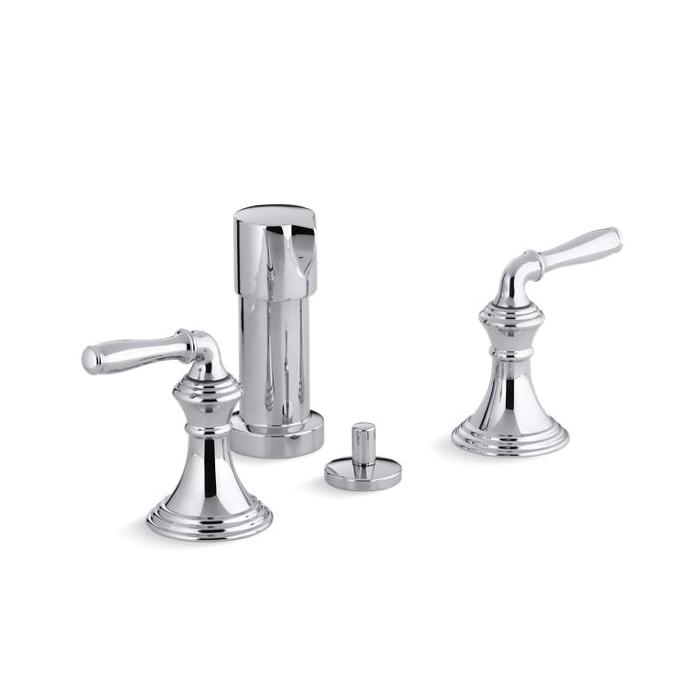 Kohler® Widespread Bidet Faucet, Devonshire®, 2.2 gpm, 5-1/2 in Center Distance, Lever, 2 Handles, Pop-Up Drain, Spray Pattern: Vertical, Fixture Mount, Ceramic Disc Valve/Cartridge, 6-1/8 in H, Solid Brass, Polished Chrome