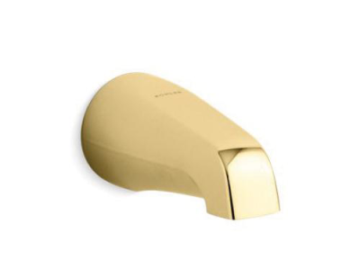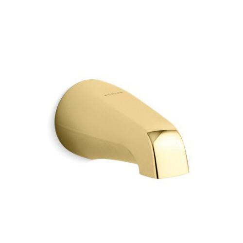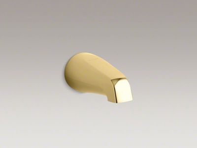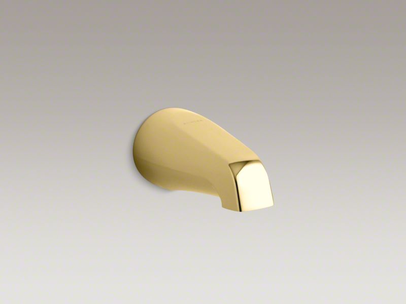Kohler® Non-Diverter Bath Spout, Wall Mount, Devonshire®, 4-5/8 in, For Use with: Model K-T395 Pressure-Balancing Bath/Shower, Slip-Fit Connection, Brass, Vibrant® Polished Brass, 4-7/16 in L x 2-1/2 in H