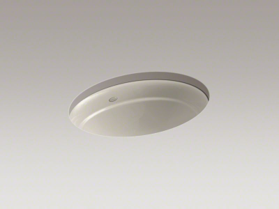 Kohler®, 2824-G9, Bathroom Sink, Serif® Collection, Oval Shape, 17-3/4 in L x 12-3/4 in W Bowl, 1-5/8 in Drain Opening, 1 Basins, 20-5/8 in W x 15-1/4 in D x 8-7/16 in H Overall, Undermount Mounting, Enameled Cast Iron, Sandbar, ADA Compliance: Yes