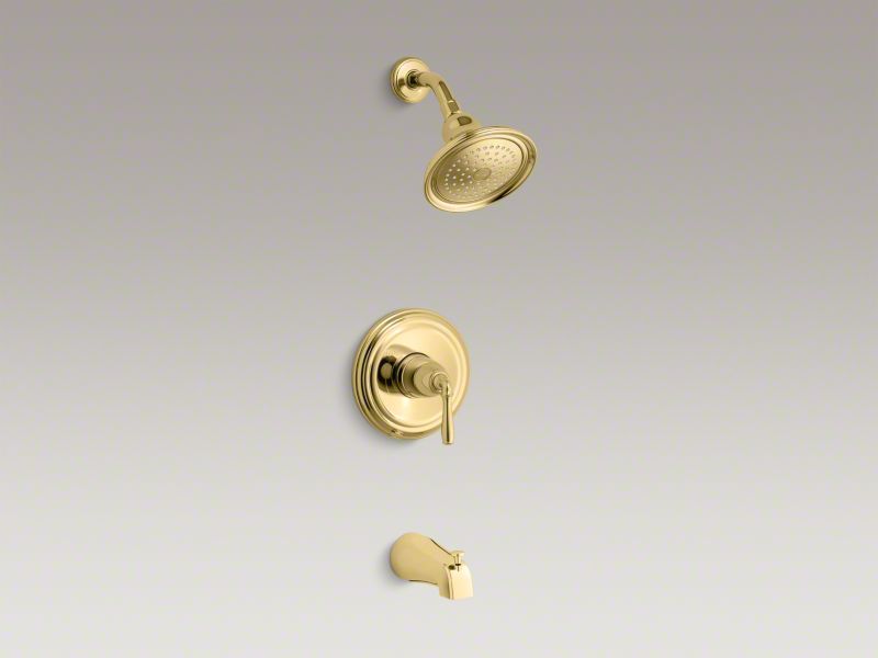 Kohler T395-4-PB Rite-Temp(R) Pressure-Balancing Bath and Shower Faucet, Lever Handle