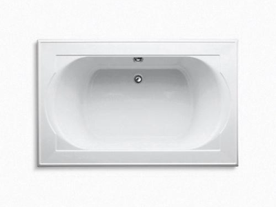 Kohler® Bathtub, Memoirs® Collection, Soaking Bath Therapy, Rectangle Shape, 66 in Length, 42 in Width, 22 in Height, 81 gal Water, Center Drain Location, 1-1/2 in Drain, 42 x 27 in Bottom/54 x 30 in Top Basin Bathing Well, 16 in Overflow Height, Drop-In Mounting, Acrylic, White