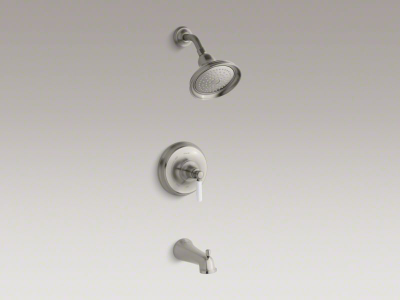 Inspired by early 1900s American design, Bancroft faucets combine vintage style with durable construction. This Bancroft bath and shower faucet trim features a single-control lever handle for easy use. Pair this trim with a Rite-Temp(R) pressure-balancing valve, which maintains your desired water temperature during pressure fluctuations.