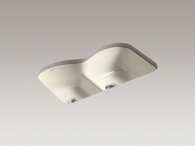 Kohler 6626-6U-FD Langlade (R) 33" x 22" x 9-5/8" Under-mount Smart Divide (R) Double-equal Kitchen Sink with 6 Oversize Faucet Holes