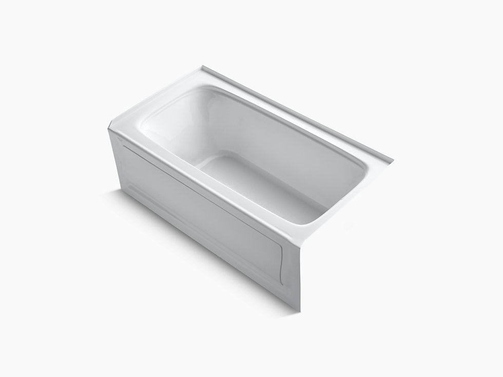 Kohler® 1150-RA-0 Bancroft® Bathtub With Integral Apron and Integral Flange, Soaking Hydrotherapy, Rectangle Shape, 60 in L x 32 in W, Right Drain, White