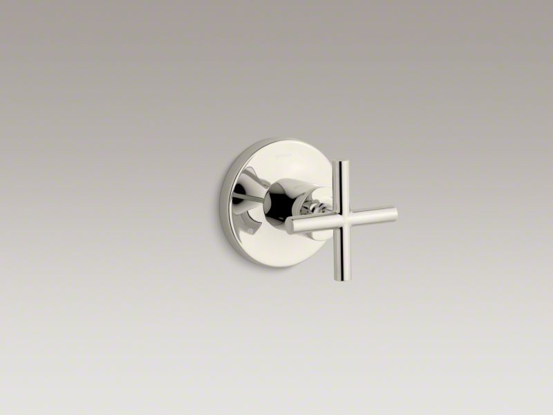Kohler® Transfer Valve Trim, Purist®, 1 Handles, Cross, 3-7/8 in Dia x 4-13/16 in D Trim, Transfer Valve/Cartridge, Hand Shower Yes/No: No, Wall Mount, For Use with: MasterShower® K-728 Series Transfer Valves and MasterShower® K-737 Series Diverter Valves, Metal, Vibrant® Polished Nickel