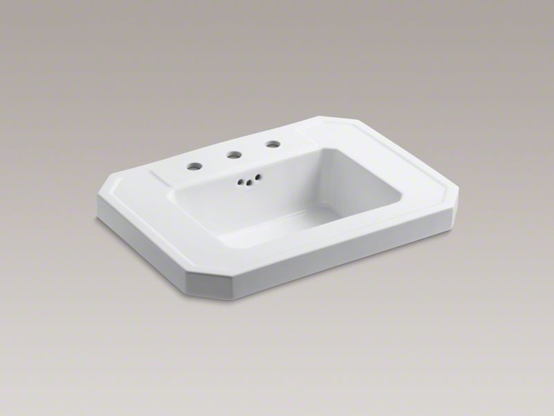 Inspired by a 1929 Kohler exhibition at the Metropolitan Museum of Art, the Kathryn collection captures the unforgettable style of a bygone era. The generously sized rectangular basin and angled-corner design of this Kathryn sink brings timeless sophistication to the bathroom, particularly when paired with the Kathryn pedestal.