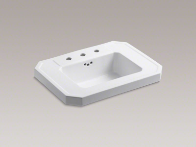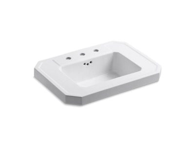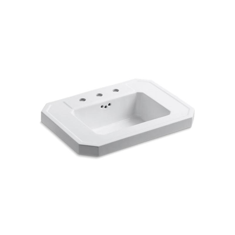 Kohler® 2323-8-0 Kathryn® Bathroom Sink Basin With Overflow, Rectangle Shape, 4 in Faucet Hole Spacing, 27 in W x 20 in D x 8-7/8 in H, Wall Mount, Fireclay, White