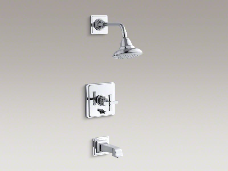 Kohler T13133-3A-CP Rite-Temp(R) Pressure-Balancing Bath and Shower Faucet Trim, Cross Handle