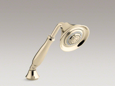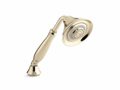 Kohler® Hand Shower, Multi-Function 4-Way, Forte®, 2.5 gpm, 1/2-14 Hose Thread, Number of Sprays: 4, Spray Pattern: Massage/Mist/Soft/Wide, 4-11/16 in Overall Length, 4-3/4 in Overall Width, 11-15/16 in Overall Height, Metal, Vibrant® French Gold