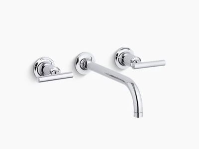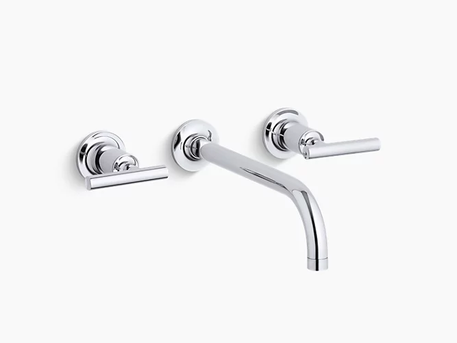 Capturing the style of minimalist design, Purist faucets deliver streamlined water control. This sink faucet trim features a 90-degree angle spout and lever handles for easy operation. The convenient wall-mount design provides a clutter-free countertop in your bath or powder room. When paired with a two-handle ceramic disc valve, this trim offers optimal performance. Combine it with bath accessories from the Purist collection for a distinctively modern and unified decor.