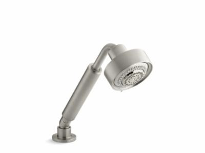 Kohler® Hand Shower, Multi-Function 4-Way, Purist®, 2.5 gpm, 1/2-14 Hose Thread, Number of Sprays: 4, Spray Pattern: Massage/Rain/Soft/Wide, 4-9/16 in Overall Length, 3-5/8 in Overall Width, 11-7/16 in Overall Height, Vibrant® Brushed Nickel
