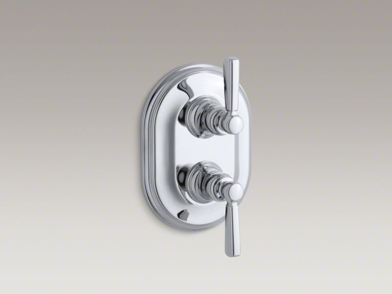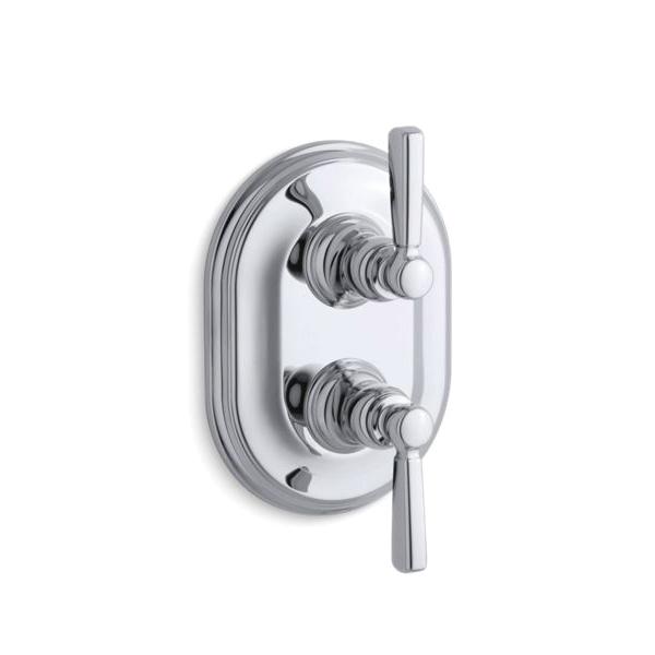 Kohler® Valve Trim, Stacked, Bancroft® MasterShower®, 2 Handles, Ergonomic Metal Lever, 5-15/16 in W x 3-13/16 in D x 9-1/2 in H Trim, Thermostatic Valve/Cartridge, Wall Mount, Brass, Polished Chrome