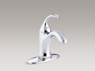 Kohler® Bathroom Sink Faucet, Forte®, 1.2 gpm, Stationary Spout, 5-1/8 in Spout Reach, 4-1/8 in Spout Height, Lever Handle, 1 Handles, Pop-Up Drain, 1 Faucet Holes, Function: Traditional, 2-1/2 in Maximum Deck Thickness, Ceramic Disc, 6 in W x 8-1/8 in H, Solid Brass, Polished Chrome
