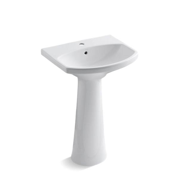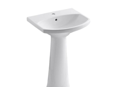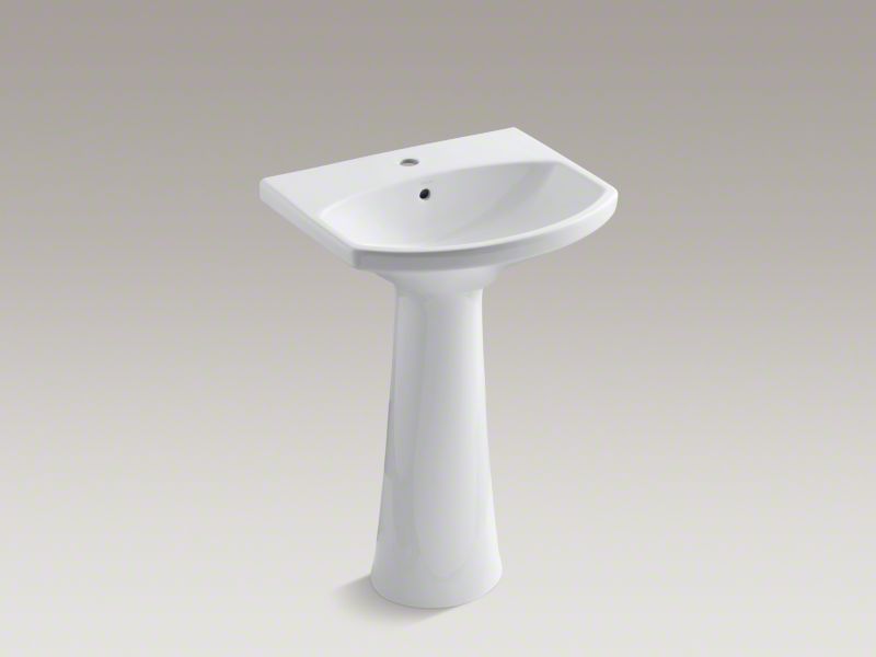 The KOHLER® Cimarron collection combines the best of traditional and contemporary design for a versatile look that complements a range of bathroom styles. Beveled edges and simple lines enhance the uniquely shaped rectangular pedestal bathroom sink basin.