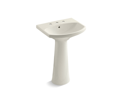 Kohler® 2362-8-96 Cimarron® Bathroom Sink Basin With Overflow Drain, Arched Shape, 4 in Faucet Hole Spacing, 22-3/4 in W x 18-7/8 in D x 34-1/2 in H, Wall Mount, Vitreous China, Biscuit