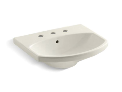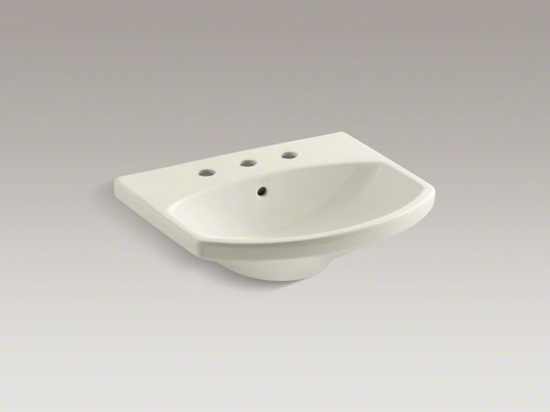 Kohler® 2363-8-96 Cimarron® Bathroom Sink Basin With Overflow Drain, Arched Shape, 4 in Faucet Hole Spacing, 22-3/4 in W x 18-7/8 in D x 7-11/16 in H, Wall Mount, Vitreous China, Biscuit