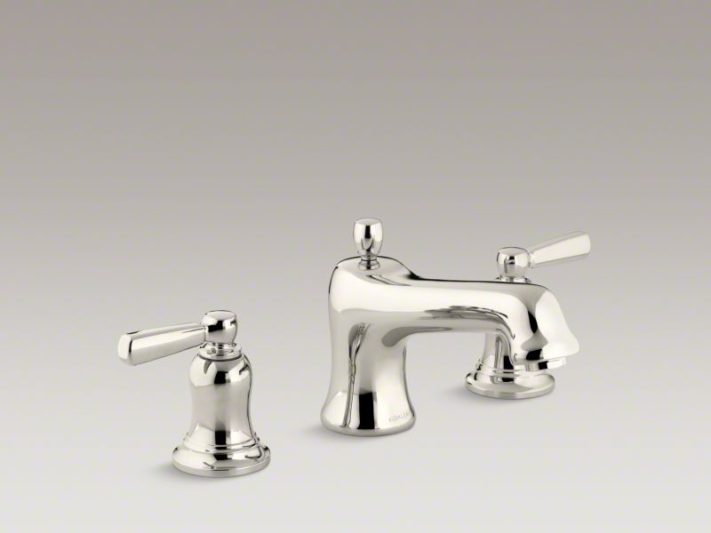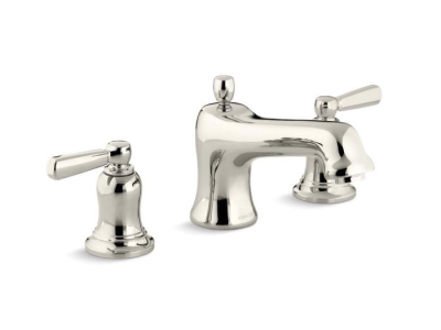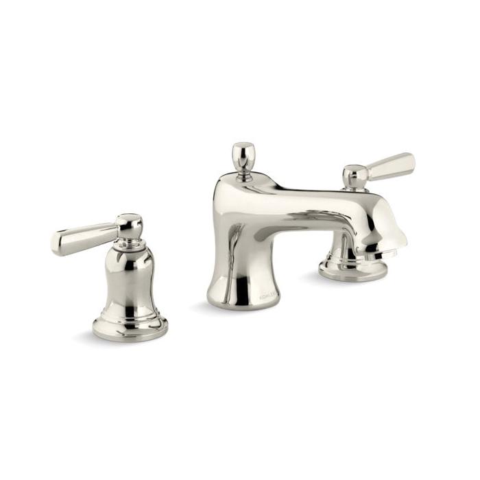Kohler® Bath Tub Faucet Trim, Bancroft®, 16 gpm, 8 in Center Distance, Non-Diverter Spout, 7-3/16 in Spout Reach, 3-7/16 in Spout Height, Metal Lever, 2 Handles, 3 Faucet Holes, Slip-Fit, Function: Traditional, Hand Shower Yes/No: No, 2-1/8 in Maximum Deck Thickness, Deck/Bath Mount, Ceramic Disc Valve/Cartridge, 7-3/16 in L x 8 in W x 6 in H, Solid Brass, Vibrant® Polished Nickel