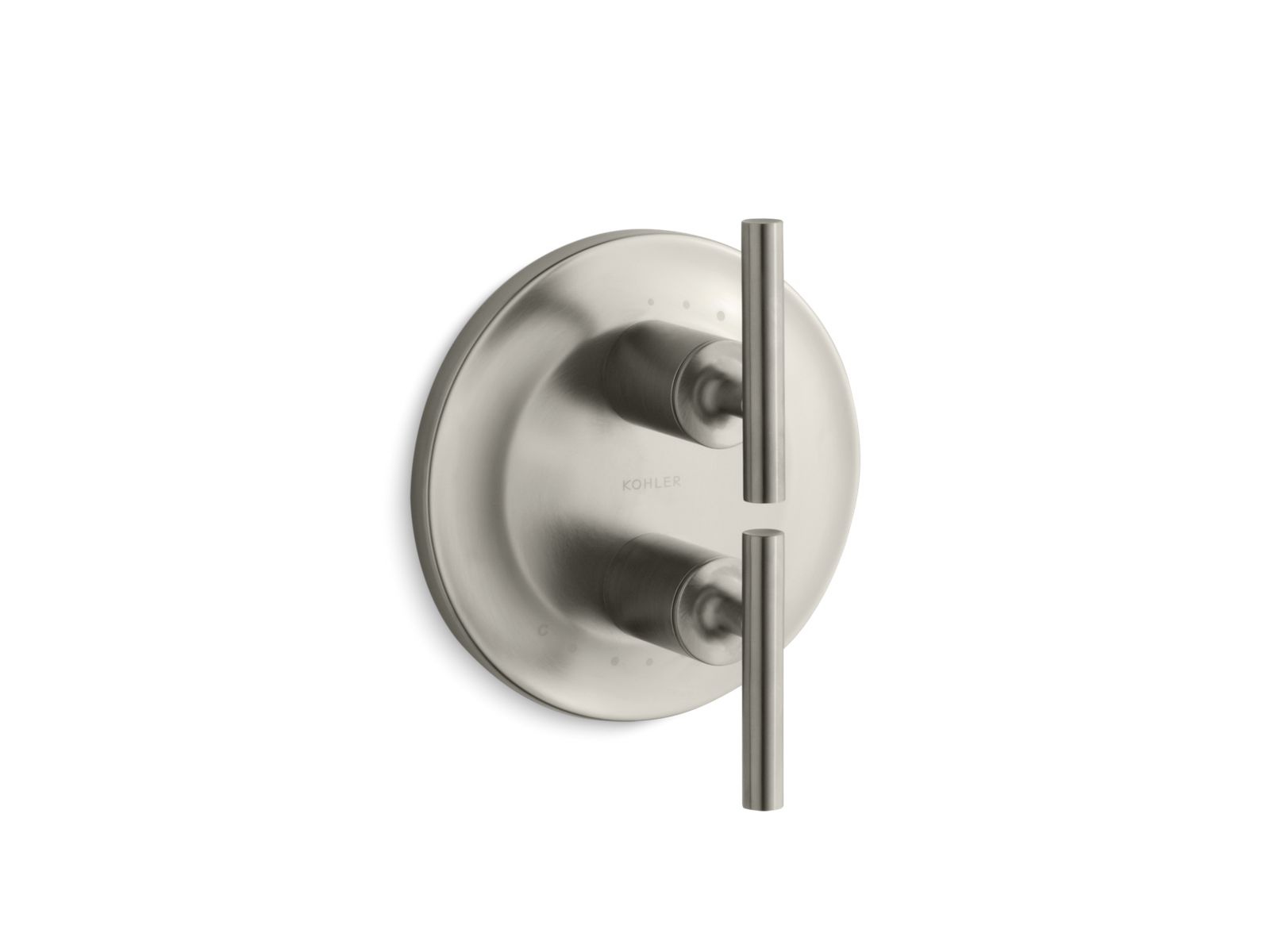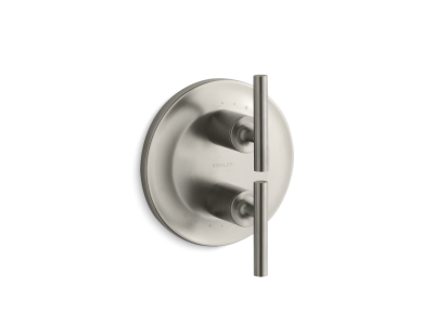 Kohler® Valve Trim, Stacked, Purist® MasterShower®, 2 Handles, Ergonomic Metal Lever, 7-1/4 in Dia x 4-1/4 in D Trim, Thermostatic Valve/Cartridge, Wall Mount, Brass, Vibrant® Brushed Nickel