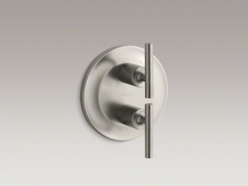 KOHLER® Purist faucets and accessories combine simple, architectural forms with sensual design lines and careful detailing. This valve trim echoes Purist's modern, minimalist style with a simple pair of stacked, ergonomic lever handles for easy control. Pair this trim with a MasterShower® stacked thermostatic valve for precise water temperature.