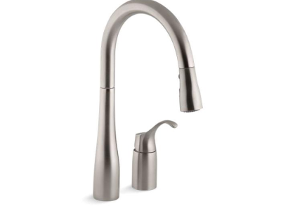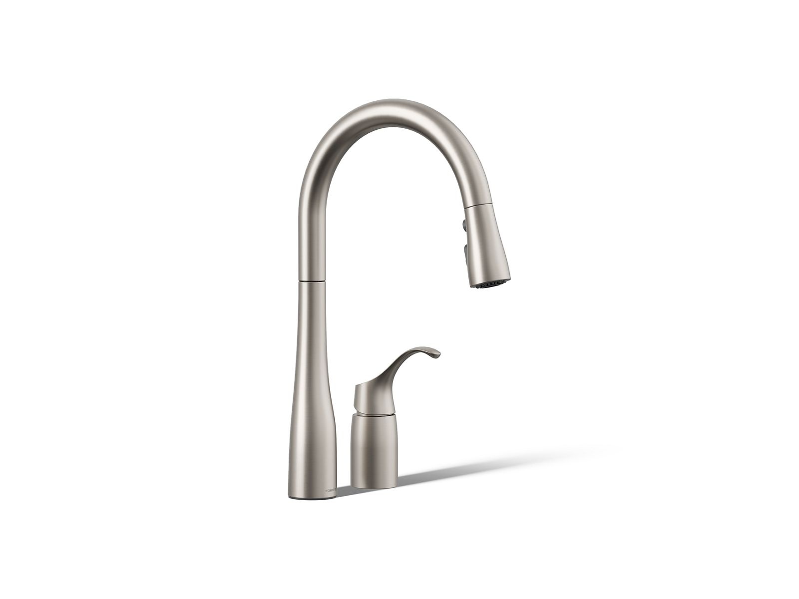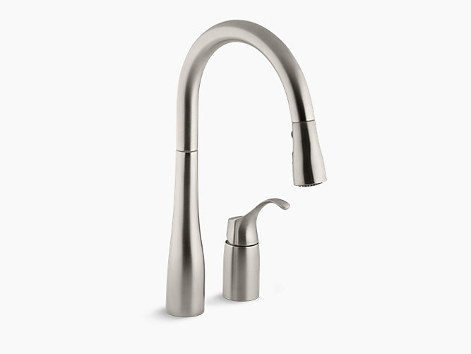 An innovative fit for a variety of kitchens and tasks, this KOHLER® Simplice pull-down kitchen faucet combines an elegant, universal design with exceptional ergonomics and functionality. The high-arch deck-mount kitchen faucet spout rotates 360 degrees and reaches over the tallest pots, while the smoothly maneuvering sprayhead pulls down into the sink for up-close tasks, or out of the sink to fill pots. Sculpted buttons on the sprayhead ensure simple operation even with wet, soapy hands. Sweep™ spray creates a wide, forceful blade of water for superior cleaning. KOHLER®'s docking system, DockNetik®, secures the pull-down sprayhead to the spout.