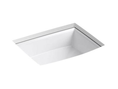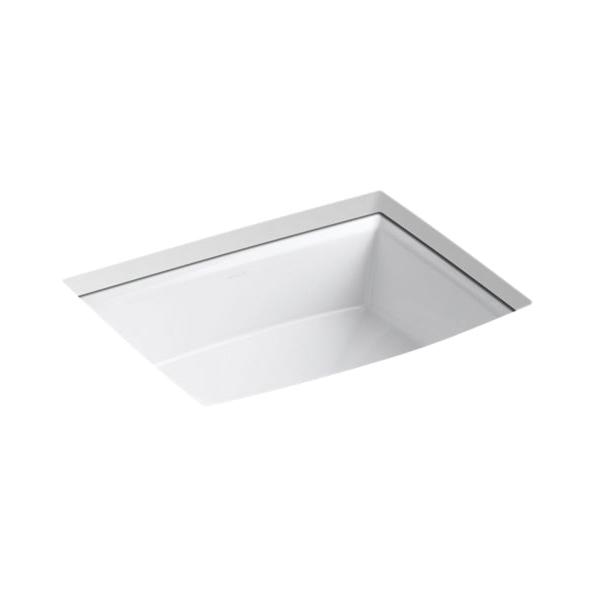 Kohler®, 2355-0, Bathroom Sink With Overflow Drain, Archer® Collection, Rectangular Shape, 17-5/8 in L x 13 in W x 3-3/4 in D Bowl, 1-3/4 in Drain Opening, 1 Basins, 19-7/8 in W x 15-5/16 in D x 7-1/2 in H Overall, Undermount Mounting, Vitreous China, White, ADA Compliance: Yes
